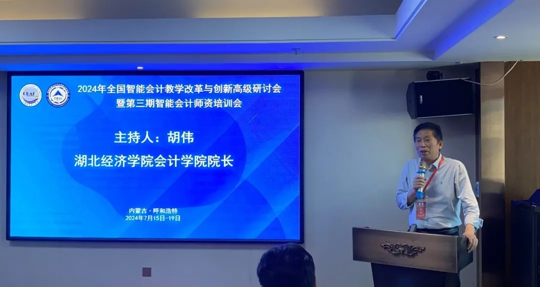 2024年7月15至19日,2024年全国智能会计教学改革与创新高级研讨会暨第三期智能会计团队培训会在呼和浩特召开。会议由中国商业会计学会主办,中国商业会计学会智能会计分会、山东财经大学智能会计与数字企业研究院、高等教育出版社上海出版事业部、中国人民大学出版社承办,北京智行祥瑞数据科技有限公司协办。公司多名教师参会学习研讨,经理胡伟受邀作题为《数智会计人才培养的探索与思考—以太阳成集团122cc官网入口为例》的主题发言。
