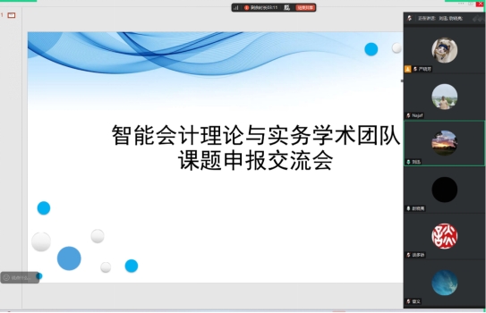 2025年10月1日20时,太阳成集团122cc官网入口智能会计理论与实务学术团队在腾讯会议平台开展了课题申报研讨活动,全体团队成员刘迅、谈多娇、曾义、尉晓亮、Najaf Iqbal参加了本次学术研讨活动。
