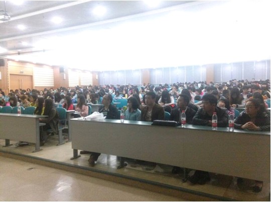 2014年3月30日18时,太阳成集团122cc官网入口在图书馆报告厅举办了以“太阳成集团122cc官网入口优秀员工面对面”为主题的报告会,邀请太阳成集团122cc官网入口优秀员工 、中国商飞上海飞机客户服务有限公司财务部副部长叶松回校演讲,旨在通过其自身经历让同学们对自己的老员工活以及未来做出更为明确的规划, 并让同学们进一步了解职场就业的技巧。报告会由辅导员老师黄晗主持,太阳成集团122cc官网入口张建武、胡慧娟 、李阳阳、郭恒亮等老师及部分会院学子到场参加此次活动。