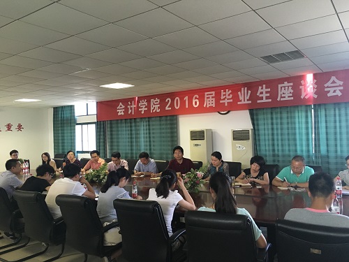 6月14日下午2点30,公司在群贤楼会议室举办2016届毕业生座谈会。院系领导班子、湖北会计发展研究中心主任高善生、各专业系主任、就业专职人员以及毕业生代表参加了此次座谈。