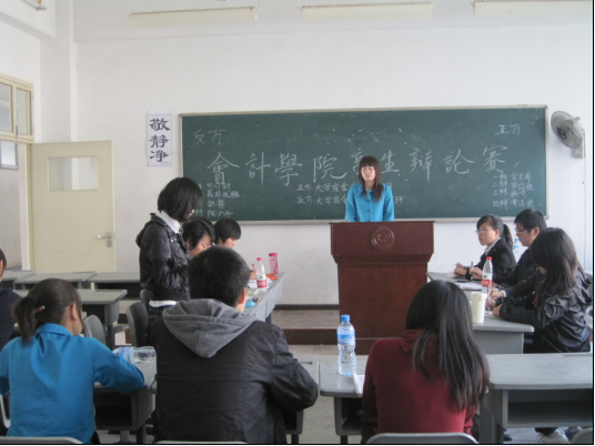 10月21日,太阳成集团122cc官网入口于二号教学楼202、204、206三间教室举行了大一新生辩论赛,参赛班级分别是注会Q1041 vs会计Q1042、注会Q1042 vs资产评估Q1041、财务管理Q1041 vs 审计Q1041。三场比赛以“大学寝室应不应该限网”为辩题同时进行,担任此次辩论赛评委的是公司员工会各部部长。在这个展现才华、激扬青春的舞台上,双方辩手针锋相对,唇枪舌战,却又能够不失风度,侃侃而谈。