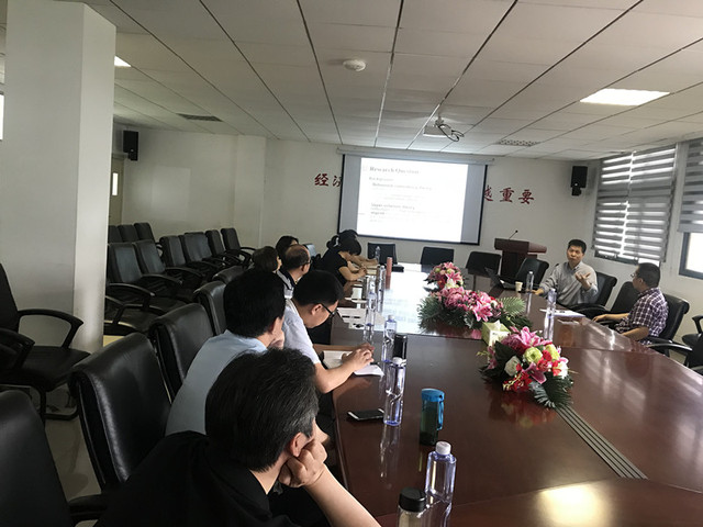 本网讯 5月25日上午10点,美国肯塔基大学会计系谢宏副教授应邀为公司师生作了主题为“CEO Political Ideology and Audit Pricing”的学术报告,公司部分专业教师和研究生参加了报告会,副经理黄益雄主持了报告会。