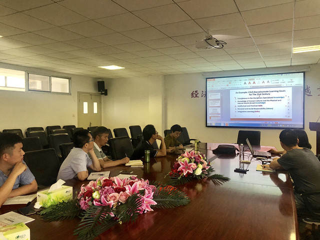 刘教授首先介绍了加州州立大学萨克拉门托分校的教学评估情况、员工课程的学分构成等;讲述了加州州立大学萨克拉门托分校在人才培养上的特色(即为当地培养有领导力的人才),以及中美两国在人才培养上的差别。随后,刘教授以如何对培养目标中的“Critical Thinking”进行评估为例,解释了加州州立大学萨克拉门托分校的教学评估是如何开展的,其中运用了哪些社会学的统计方法,是如何一步步进行的,其结果是如何反馈的等等。最后,刘教授还耐心地回答了在场老师提出的问题。